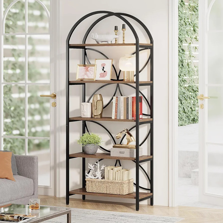 طراحی قوسدار بخش بالایی و خطوط هندسی پشت کتابخانه، ظاهری منحصربهفرد ایجاد میکند و آن را از یک شلف ساده به یک عنصر دکوراتیو تبدیل کرده است. این محصول برای نمایش دکوریها، کتابها، گلدانها، قابعکس و وسایل شخصی فضای فراوانی دارد.