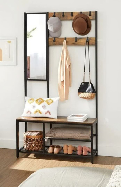 رگال لباس و جاکفشی مینیمال آینهدار یک انتخاب کاربردی و شیک برای ورودی منزل یا اتاق شماست. این محصول با ترکیب چوب و فلز، ظاهری مدرن و مینیمال دارد و به راحتی فضای ورودی را منظم و زیباتر میکند.